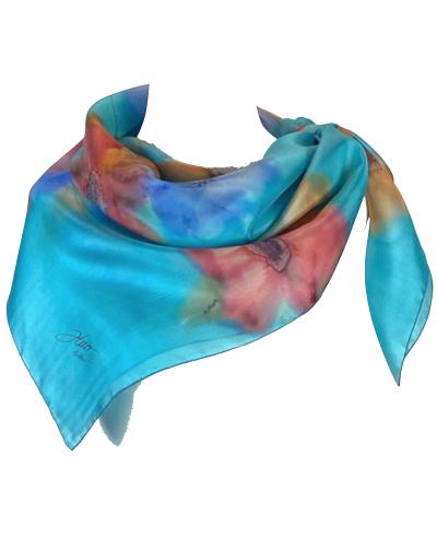 Foulard fait de soie luxueuse peint à la main, unique et original.