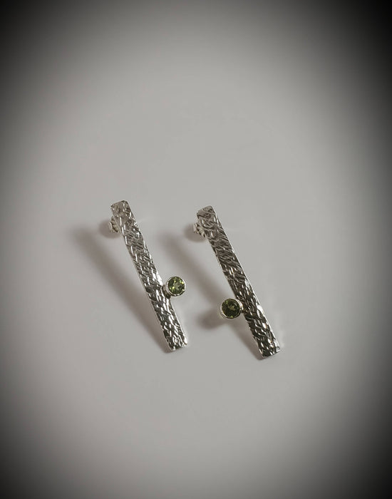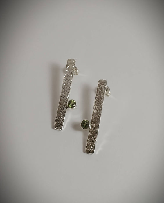 • Boucles-d'oreilles en argent .925 martelé serties de péridot 4 mm véritable.