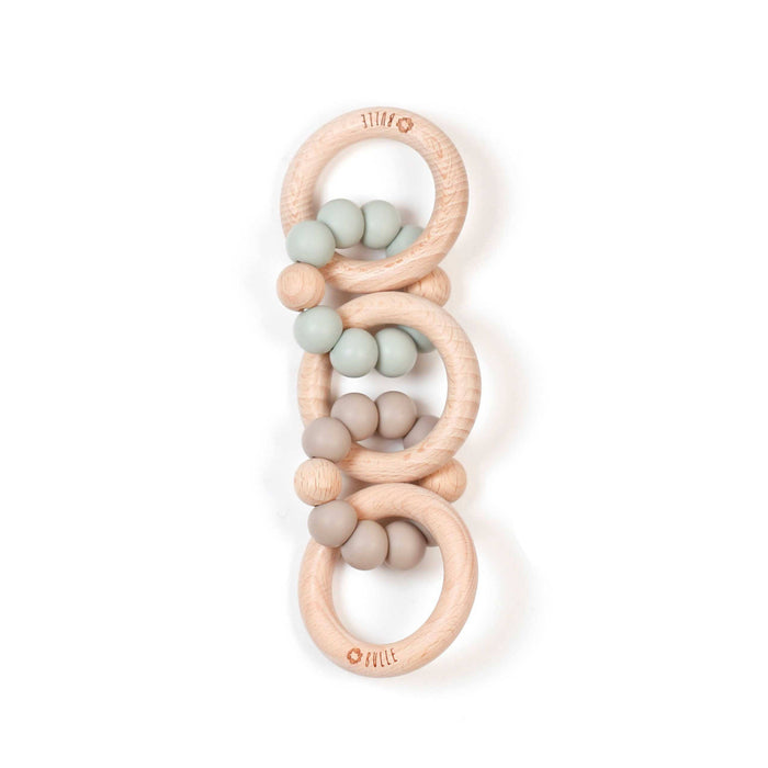 • Bébé appréciera le mélange des textures du bois et du silicone qui éveilleront ses sens, l’aideront à soulager la douleur associée à la poussée dentaire ainsi qu’à développer sa motricité fine. Sans oublier les jolis cliquetis émis par le bois qui s’entrechoque lorsque bébé secoue son hochet: divertissement garanti!