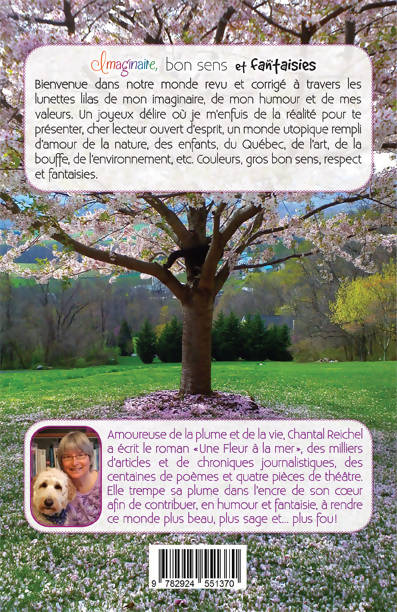 Amoureuse de la plume et de la vie, l'auteure Chantal Reichel a écrit le roman "Une Fleur à la mer", des milliers d'articles et de chroniques journalistiques, des centaines de poèmes et quatre pièces de théâtre. Elle trempe sa plume dans l'encre de son cœur afin de contribuer, en humour et fantaisie, à rendre ce monde plus beau, plus sage et... plus fou!