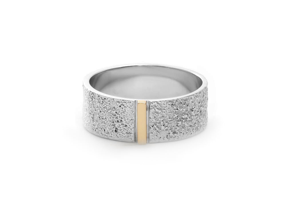 La vie a parfois ce petit côté râpeux. On voudrait que tout soit lisse mais c’est rarement le cas. La fusion du métal à haute température permet d’obtenir le grain qui caractérise ce bijou. On le juxtapose ensuite à une texture plus lisse et c’est d’autant plus beau. On y voit les embûches, les efforts.