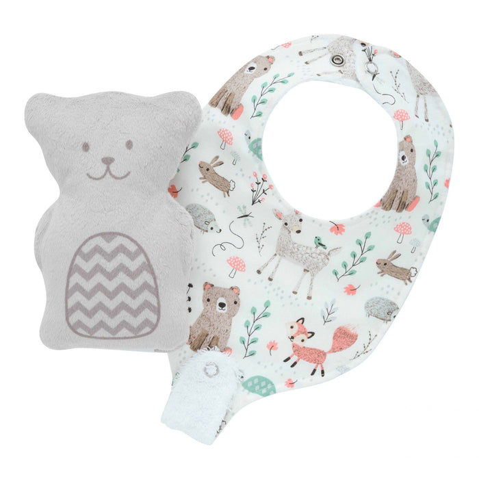 Note: Le motif sur l'ourson peut différer en fonction de la disponibilité. Les motifs des bavoirs sont tels que les photos.