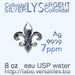 LYS ARGENT Colloïdal (Ingrédients : eau purifiée, colloïdes d'argent, ions d'argent) • Concentration (Ag) : 7 ppm (mg/L) • Pureté de l'argent : 9999 (99.99%) • Tailles des particules : 16 nm • Minéraux d'Eau USP * : 0.2 ppm • Quantité : 8 onces (~240 ml) • Vendu depuis 2011 * Marque Pharma.O au norme USP (United States Pharmacopeia)