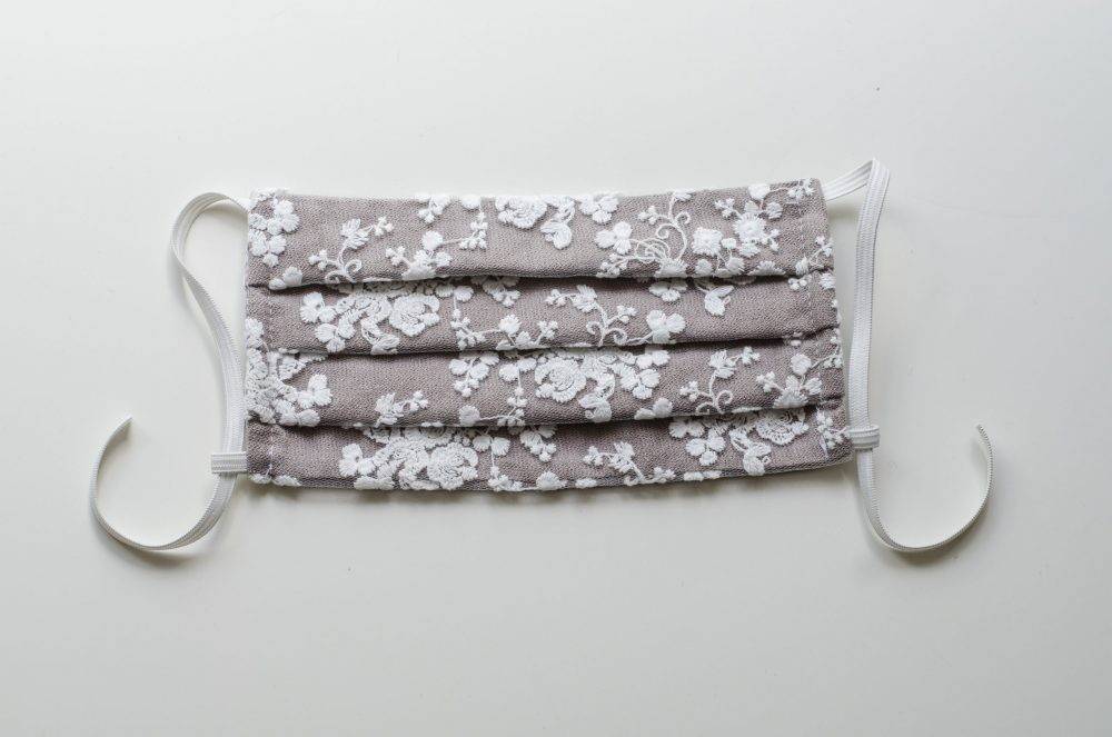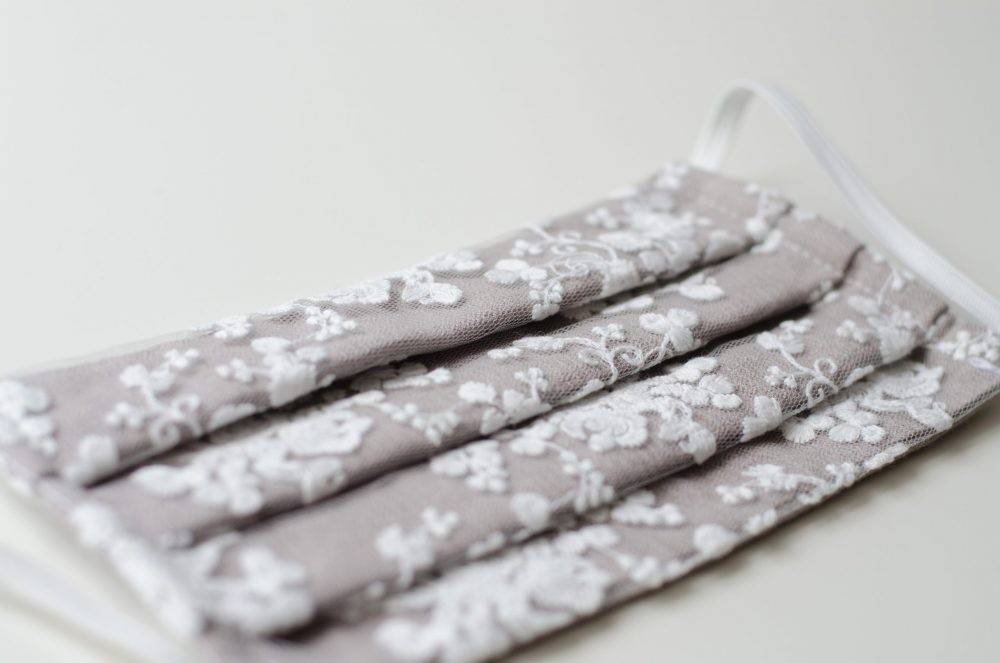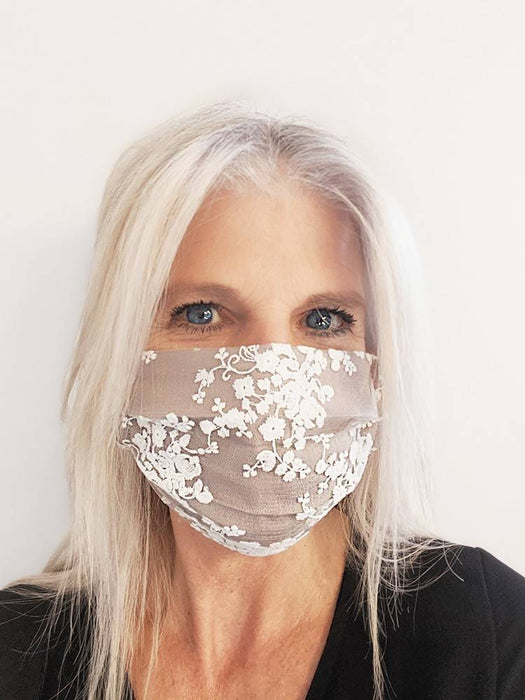 • Masque en tissé composé de 2 épaisseurs de tissu beige  + 1 épaisseur de dentelle crème de grande qualité.