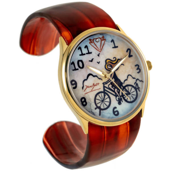 Montre fashion impression lithographie fille à vélo