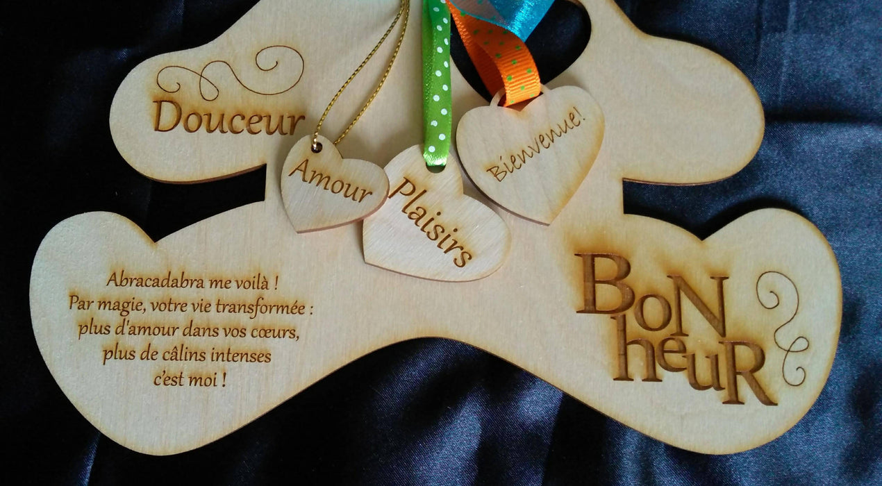 Pour la personnalisation, les cœurs “Plaisirs et Amour” seront utilisés pour la gravure de la date de naissance et du nom (maximum 12 caractères, incluant les espace ou tiret)