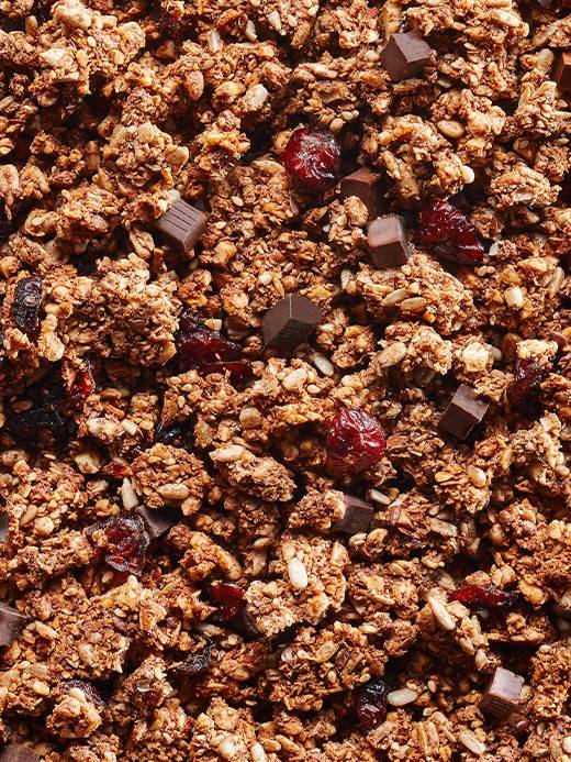 Stimulant, à base de noix et de graines grillées, ce granola végane sans grains met en vedette la profondeur du cacao et du café avec leurs notes d’amertume avec des accents de fruits rouges, auxquels s’allient les propriétés tonifiantes de l’astragale bio et la subtile douceur de la noix de coco biologique.