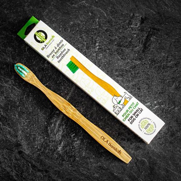 Choisir la brosse à dents pour chat et chien OLA Bamboo est un choix écologique, mais aussi un choix pour la santé dentaire de votre animal de compagnie. 85% des chats et des chiens éprouveront des problèmes dentaires dans leur vie, surtout des infections de la gencive, de la plaque, du tartre, des bactéries ou même de la gingivite. Le premier signe d’une problématique est souvent la mauvaise haleine… et un propriétaire sur deux trouve que son animal a parfois mauvaise haleine! En lui brossant les dents régulièrement, vous pourrez lui éviter bien des ennuis. Surtout qu’à long terme, les bactéries du tartre peuvent passer dans le sang et aller se fixer sur les organes, ce qui peut causer des insuffisances cardiaques et rénales.