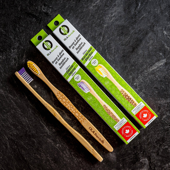En achetant une brosse à dents OLA Bamboo, vous contribuez à éliminer plus de 4,9 milliards de brosses à dents en plastique jetées chaque année. Les brosses à dents biodégradables OLA Bamboo sont le meilleur choix pour votre hygiène dentaire et pour l'environnement. Nos brosses à dents sont faciles à manipuler et les soies sont conçues avec du nylon de haute qualité pour un brossage en douceur, tout en protégeant vos gencives. [En savoir plus...]