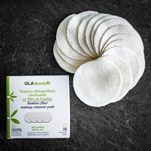 Vous contribuez à éliminer des milliards de tampons démaquillants jetés chaque année. Le bambou est une plante qui consomme moins d’eau que les autres plantes destinées au textile, elle absorbe 35 % plus de C02 que les autres forêts, elle ne requiert pas de pesticide, ni d’insecticide, elle produit le plus grand rendement de fibre par hectare et c’est l’une des ressources végétales la plus renouvelable. L’ajout de fibre de coton aux fibres de bambou fait en sorte que le textile peut résister à la machine à laver et la sécheuse. Les fibres de coton mélangées aux fibres de bambou permettent au tissu de ne pas s’altérer à des températures de plus de 40 dégrée Celsius. Passez au mode de vie zéro déchet avec des tampons démaquillants réutilisables. [En savoir plus...]