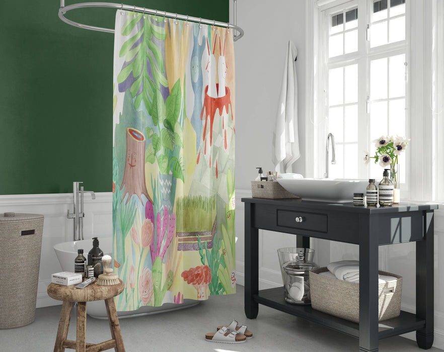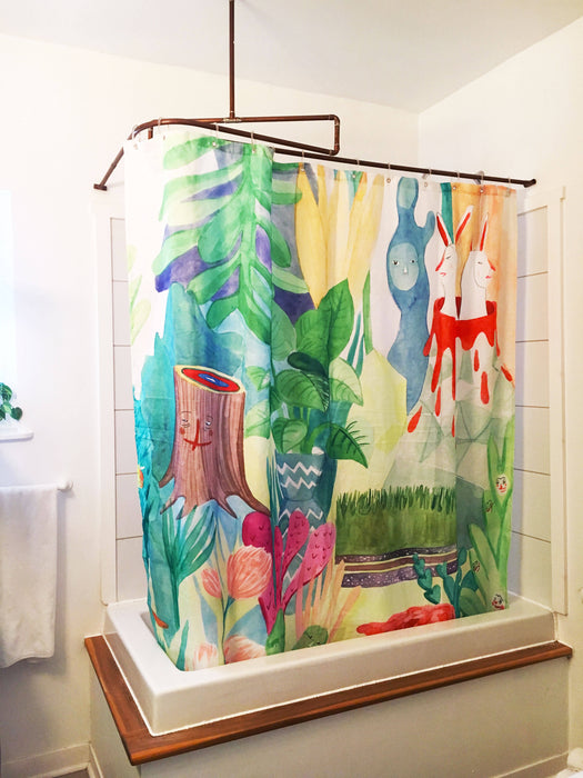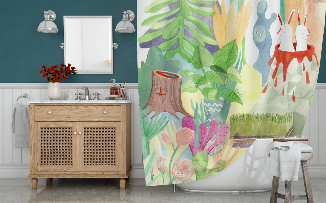 Rideau de douche de polyester, imperméable et lavable, 71" x 71", conçu en collaboration avec artiste agathe b-b