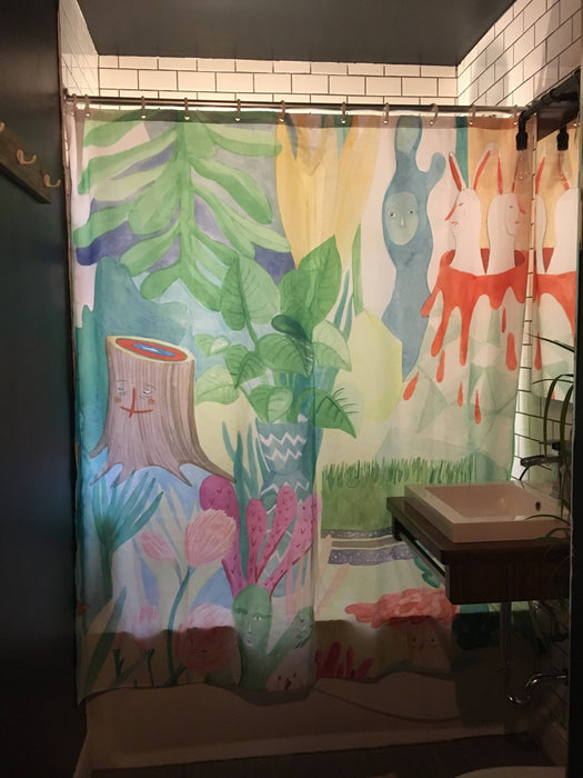 Conçu en collaboration avec l'artiste Agathe BB. Nous collaborons avec des artistes afin de créer des rideaux originaux et amusants. À Chaque achat, 20% est directement remis à l'artiste.