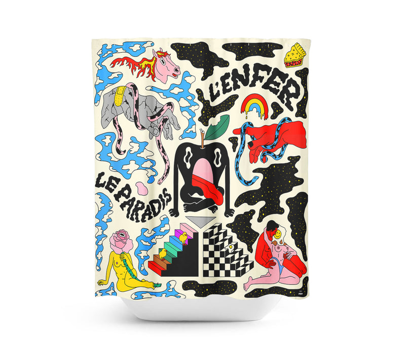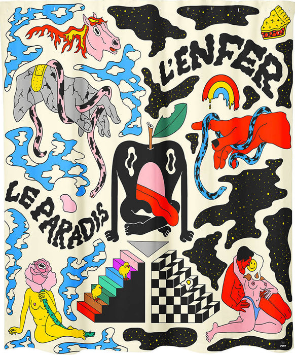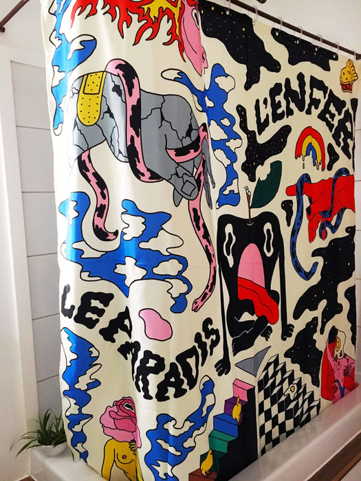 Rideau de douche en polyester, imperméable et lavable, 71" x 71", conçu en collaboration avec l'artiste pony