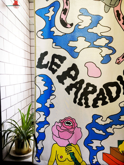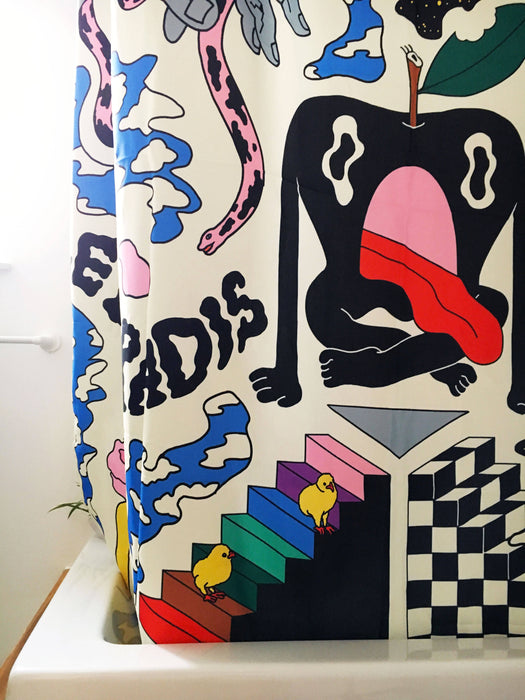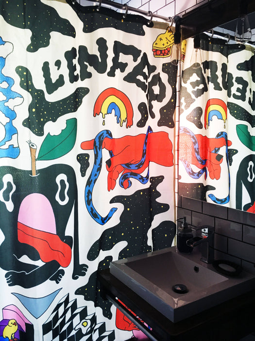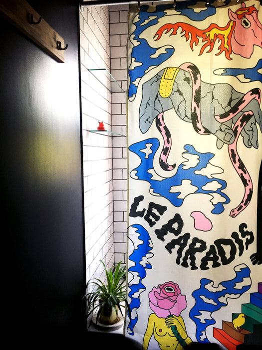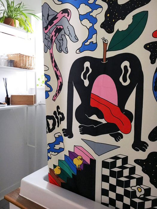 Conçu en collaboration avec l'artiste Pony. Nous collaborons avec des artistes afin de créer des rideaux originaux et amusants. À Chaque achat, 20% est directement remis à l'artiste.