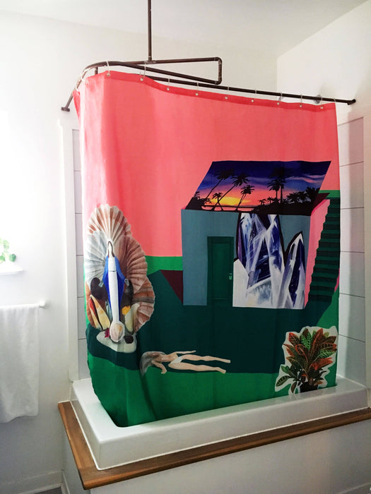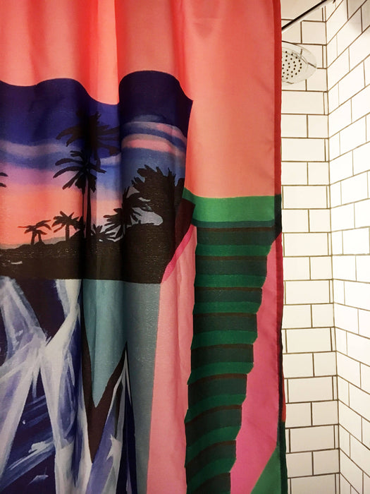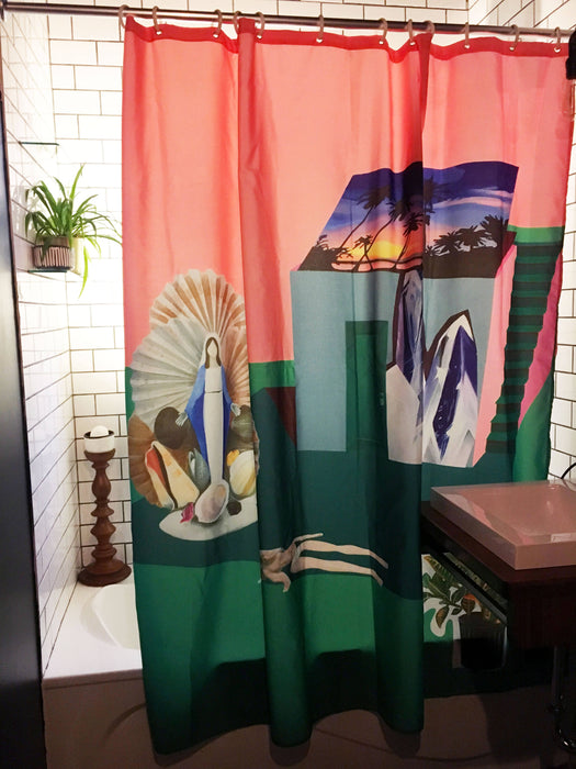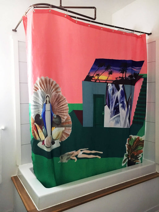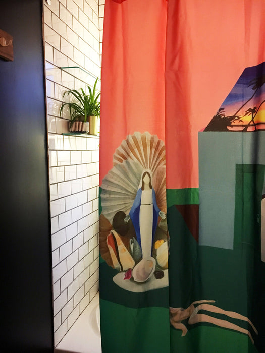 Rideau de douche de polyester, durable et lavable, conçu en collaboration avec l'artiste peintre marlene brando
