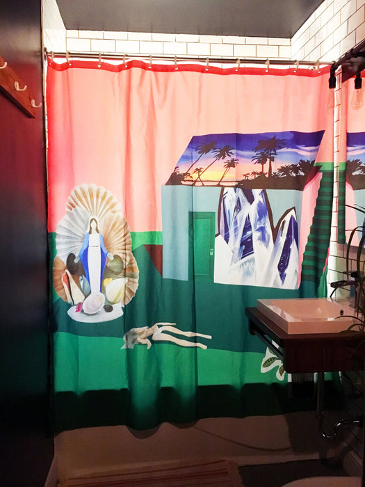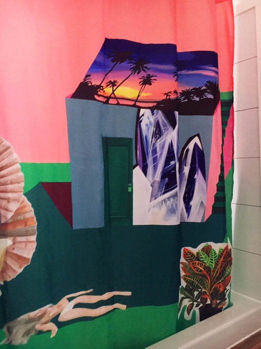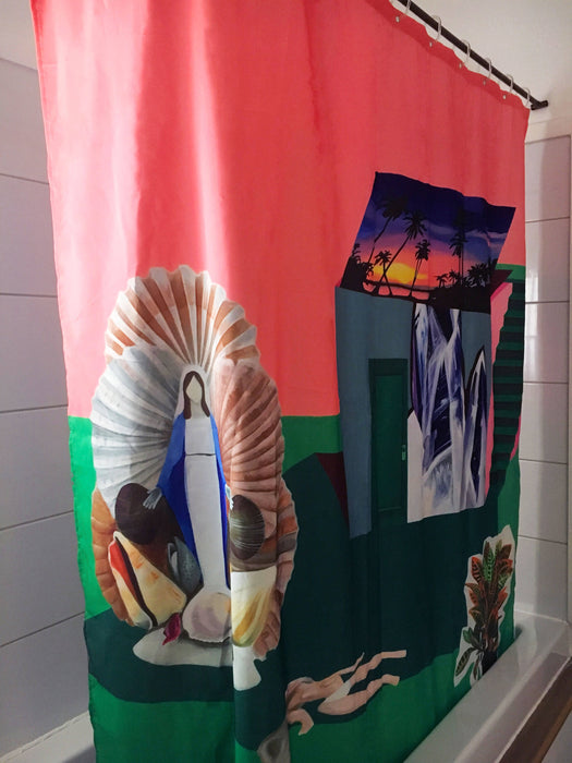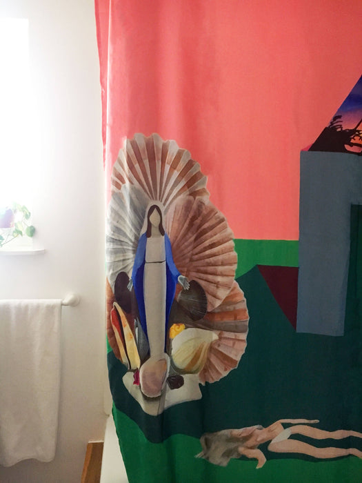 Oeuvre de la peintre Marlene Brando. Nous collaborons avec des artistes afin de créer des rideaux originaux et amusants. À Chaque achat, 20% est directement remis à l'artiste.