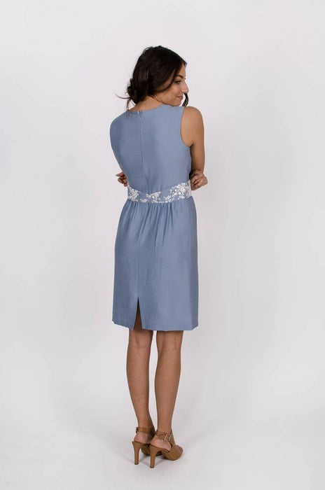 La robe Anne de Kiev sans manches, se démarque par son style classique, son encolure cache-cœur et sa découpe de dentelle à la bande de taille. Un atout à votre garde-robe!