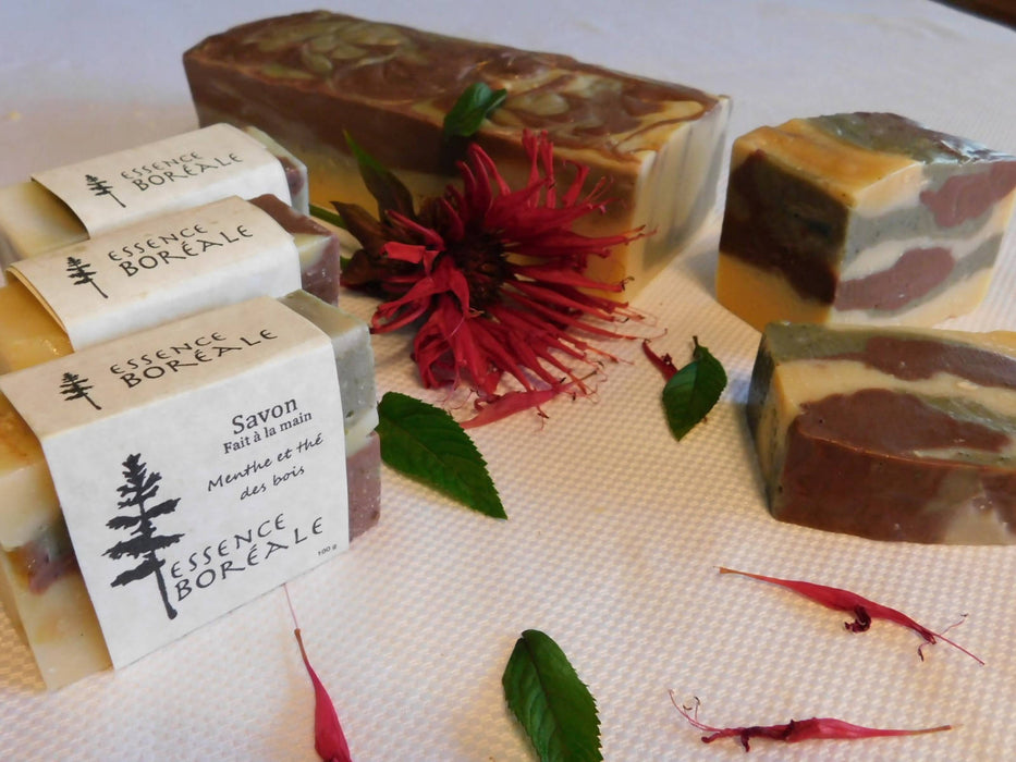 Ingrédients/Ingr./INCI : Huile de coco/coconut oil/Sodium cocoate, huile d’olive/olive oil/Sodium olivate, huile de tournesol/sunflower oil/ Sodium sunflowerseedate, acide stearique/Stearic acid, argile rouge, verte et blanche/red, green and white clay/Argilla, huiles essentielles de menthe poivrée et de thé des bois/peppermint and wintergreen oil/Mentha piperita & Gaultheria fragantissima oil.