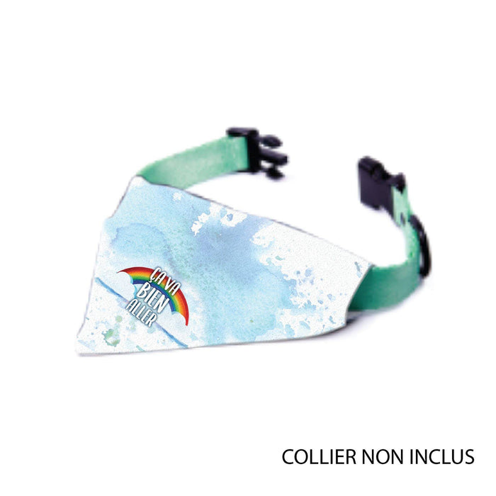 À la demande de nos clients, voici un joli foulard pour chien à l’effigie du mouvement « Ça va bien aller » et « On va s'en sortir ». Nos animaux font aussi partie de la famille !
