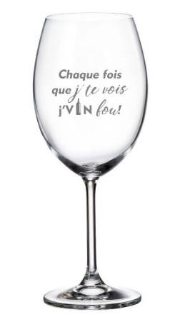 Verre à vin ''chaque fois que j'te vois j'vin fou''
