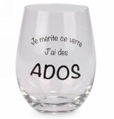 Verre à vin pour les parents d'ados. Pourquoi ne pas relaxer en sirotant votre vin avec un de nos jolis verres à vin humoristique. Trouve celui qui te parle le plus.