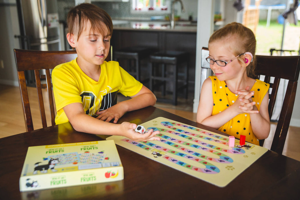 - 1 dé à images de fruits pour le recto de la planche de jeu
